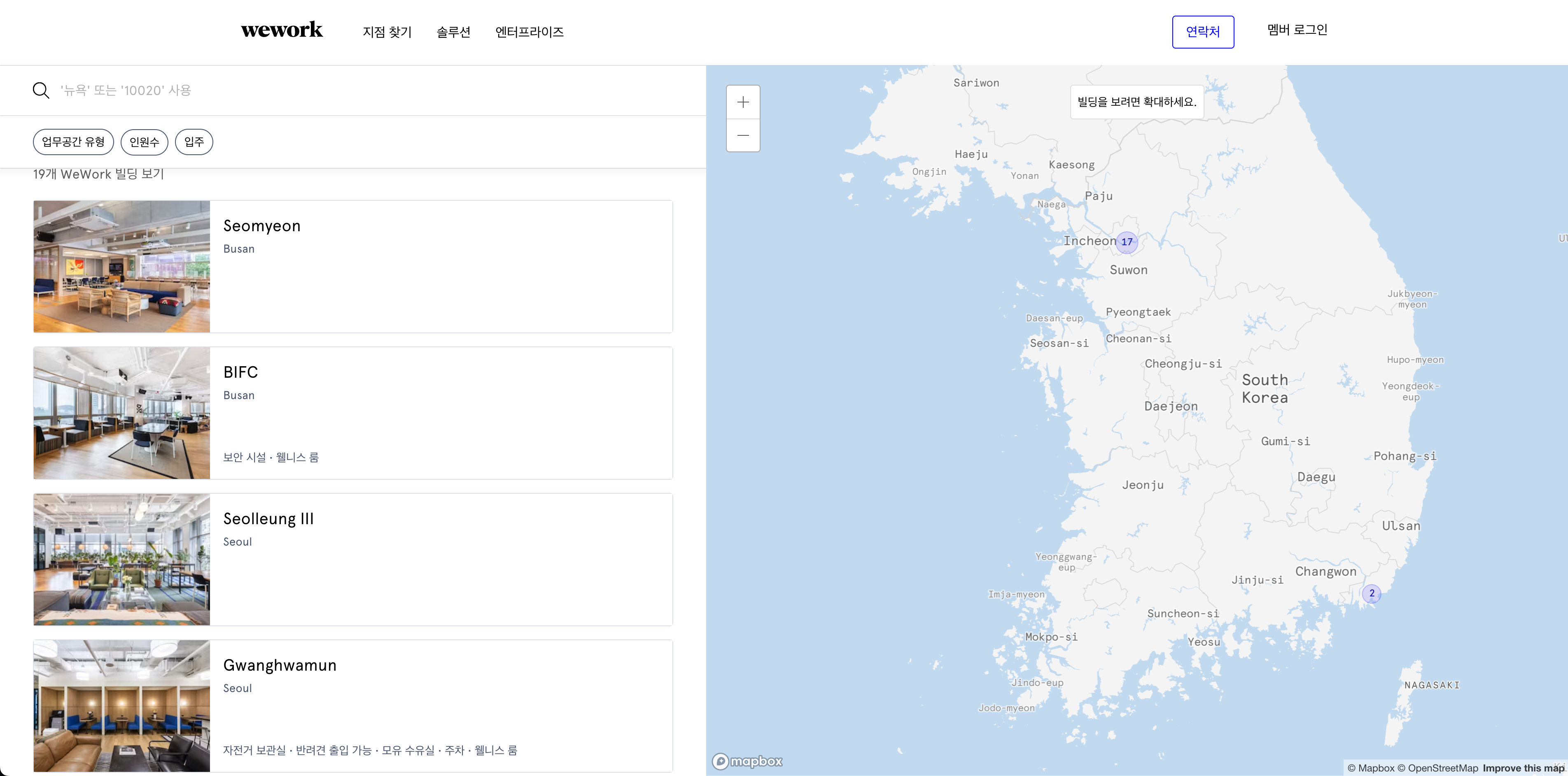 2025년 기준, 부산에는 2개의 위워크 지점이 있습니다.